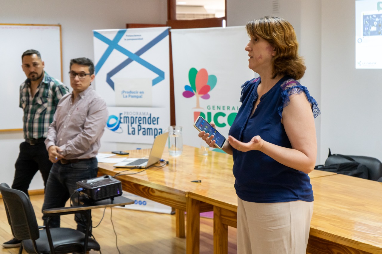 En las instalaciones del MEDANO, de la ciudad de General Pico, tuvo lugar hoy una jornada de capacitación para emprendedores y emprendedoras de la zona norte en el marco del Programa Emprender La Pampa del Ministerio de la Producción.La acción se desarrolló en forma conjunta entre el Ministerio de la Producción, la Secretaría de Trabajo y Promoción del Empleo y la colaboración de la Municipalidad de General Pico. Participaron de esta instancia la directora de Asistencia Técnica y Financiera, Lilia Cortese, el director de Desarrollo Económico y Productivo del Municipio, Lisandro Patek, y el capacitador, Exequiel Rosales.